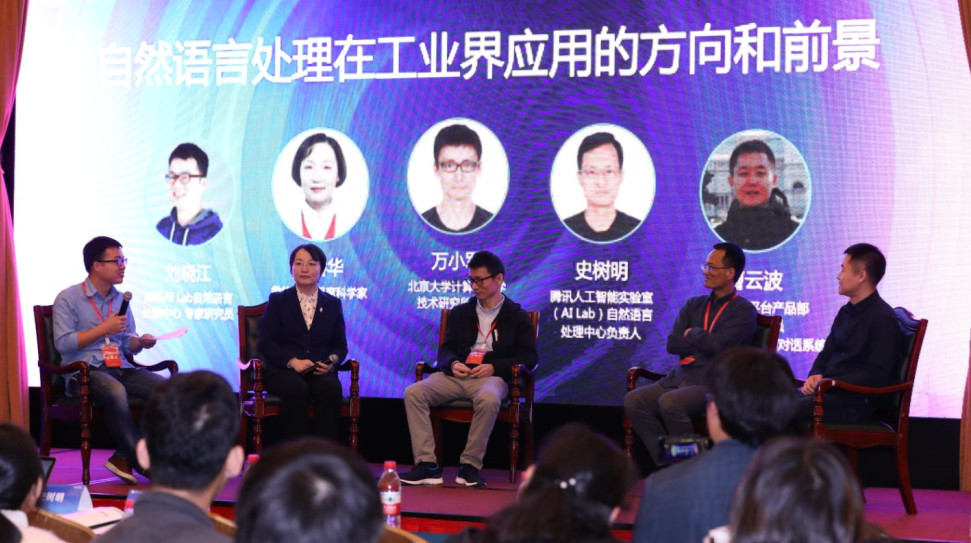 Liu Xiaojiang, the expert researcher at Tencent AI Lab NLP Center, served as the host of the round-table dialogue focused on "The Prospect of NLP Application in industry". Participants of the discussion included Song Ruihua, chief scientist of Microsoft Xiaobin; Wan Xiaojun, professor of Computer Science and Technology Research Institute of Peking University; Shi Shuming, director of Tencent AI Lab NLP Center, and Cao Yunbo, expert researcher of Tencent Intelligent Platform Product Department and technical director of Tencent Dingding Voice Assistant Dialogue System.